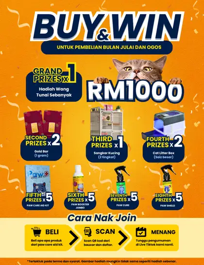 Kesemua baka kucing sesuai guna PAW Booster ini. Tetapi untuk kucing yg baru lahir masih belum buka mata tidak boleh digunakan.